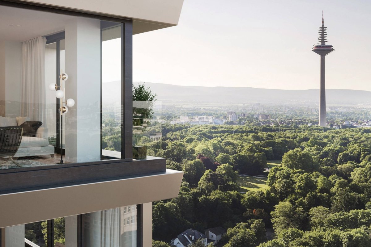 由我们设计的在法兰克福金融区的又一座地标建筑已经蓄势待发了:2021 年 11 月 8 日,黑森-图特林根Helaba 地方银行就位于 Neue Mainzer Straße大街的“central business tower”项目与 Ed Züblin 股份公司签署了总承包商协议。这也就意味着,在法兰克福的天际线中又将增添一座KSP 摩天大楼。我们的大楼由两个部分组成,这两个部分彼此间相对方位略微偏移,中间通过玻璃接缝相互连接。 两座塔楼纤长而又精致,共有52 个楼层,较为突出的一侧塔楼呈现出壮观的阶梯状。幕墙上的精细凹槽遵循大楼承重结构的走向,并加强了楼体垂直的效果。 而水平的带状结构则突显出建筑物独特的层次感,并在宏观的秩序上将建筑分成了四等份。 从 Taunusanlage 看向我们 205 米高的新建筑,这座阶梯式双子塔开启了与之相邻的高层建筑群的城市景观之宏图,并为未来将要建造的FOUR大厦以及位于附近的德国商业银行大厦和MAIN TOWER大厦之间创造了必要的平衡。