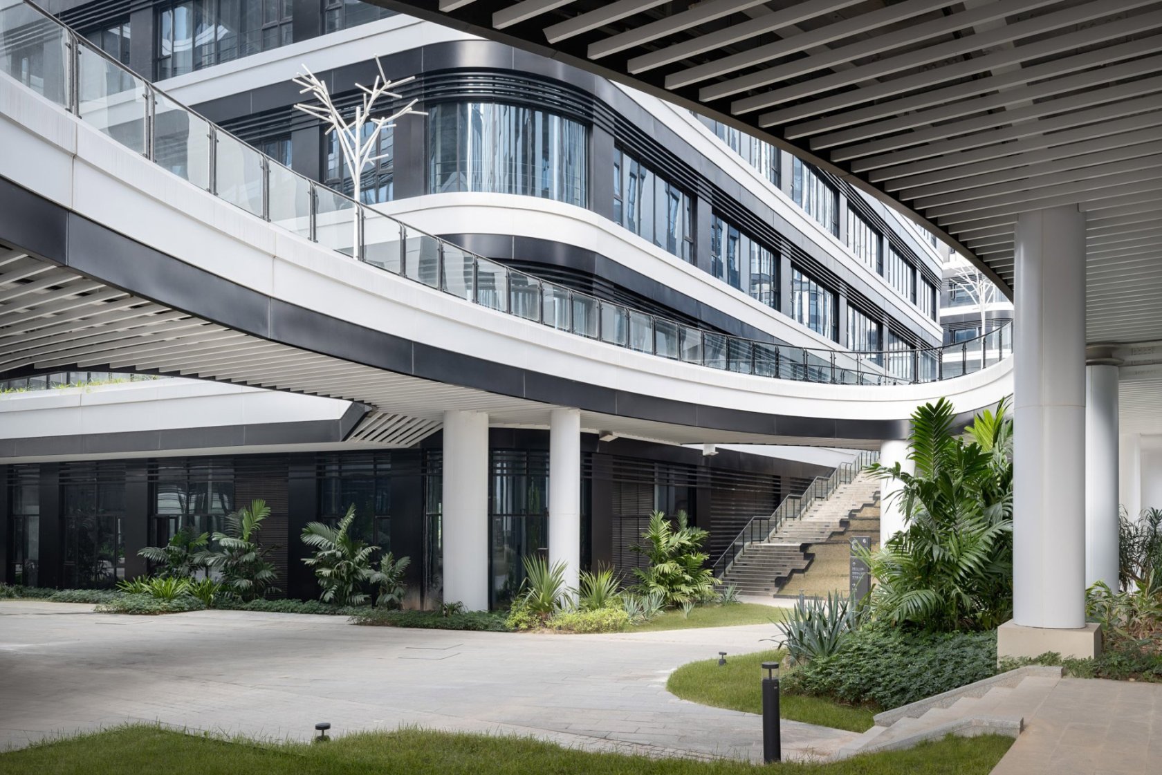 我们设计的这个生物制药企业加速器是新型的具有中国特色的研究园区和创新中心。与欧美的园区相比,它的不同之处在于它的垂直设计,有很高的空间密度。除了高层建筑,我们还在园区内设计了类似公园的开放空间。宽阔的绿色公园在办公空间的外部提供了公共聚会的场所,这是园区整体的重要组成部分。