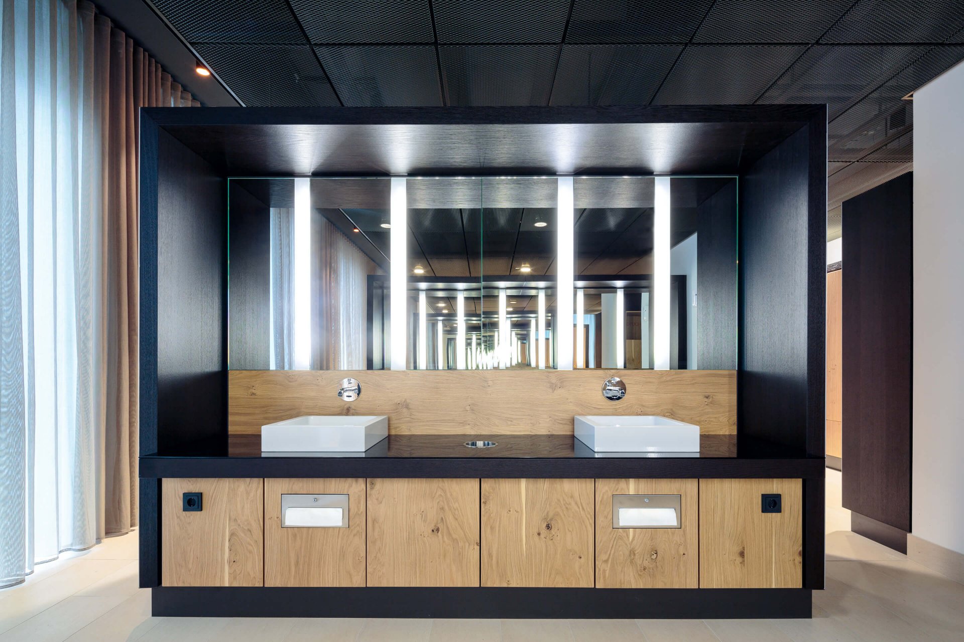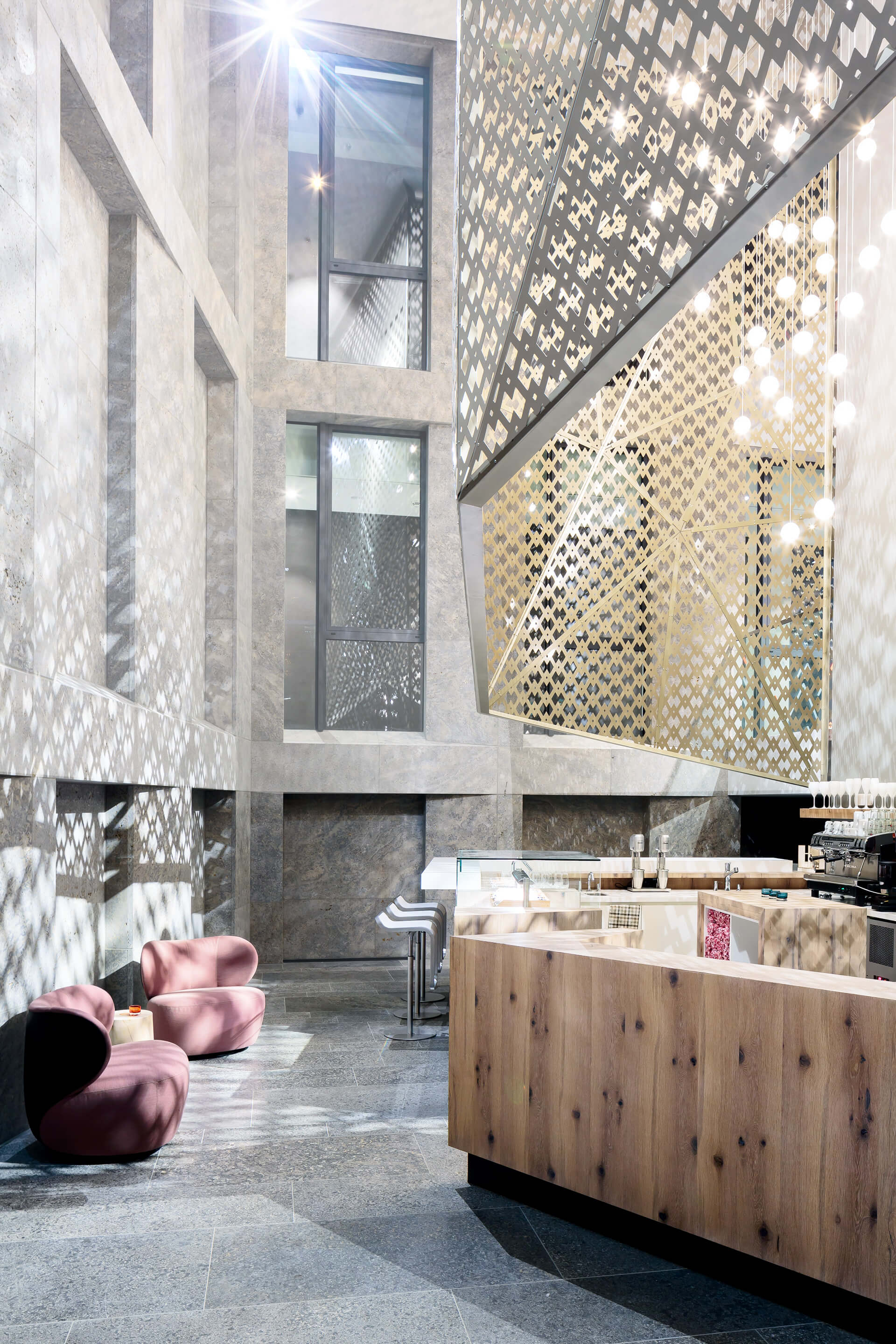 “室内设计和公司特色架构:氛围、照明和优质材料塑造品牌形象并确保舒适度。”