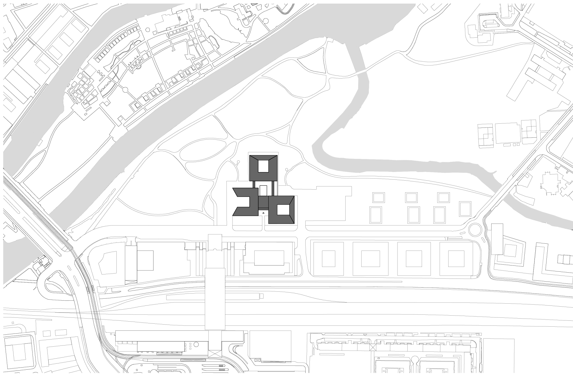 我们在城市和景观的交界处打造了一个开放的建筑群,它以自信的姿态面向城市和火车站。