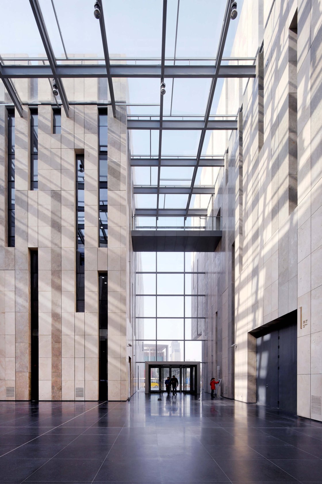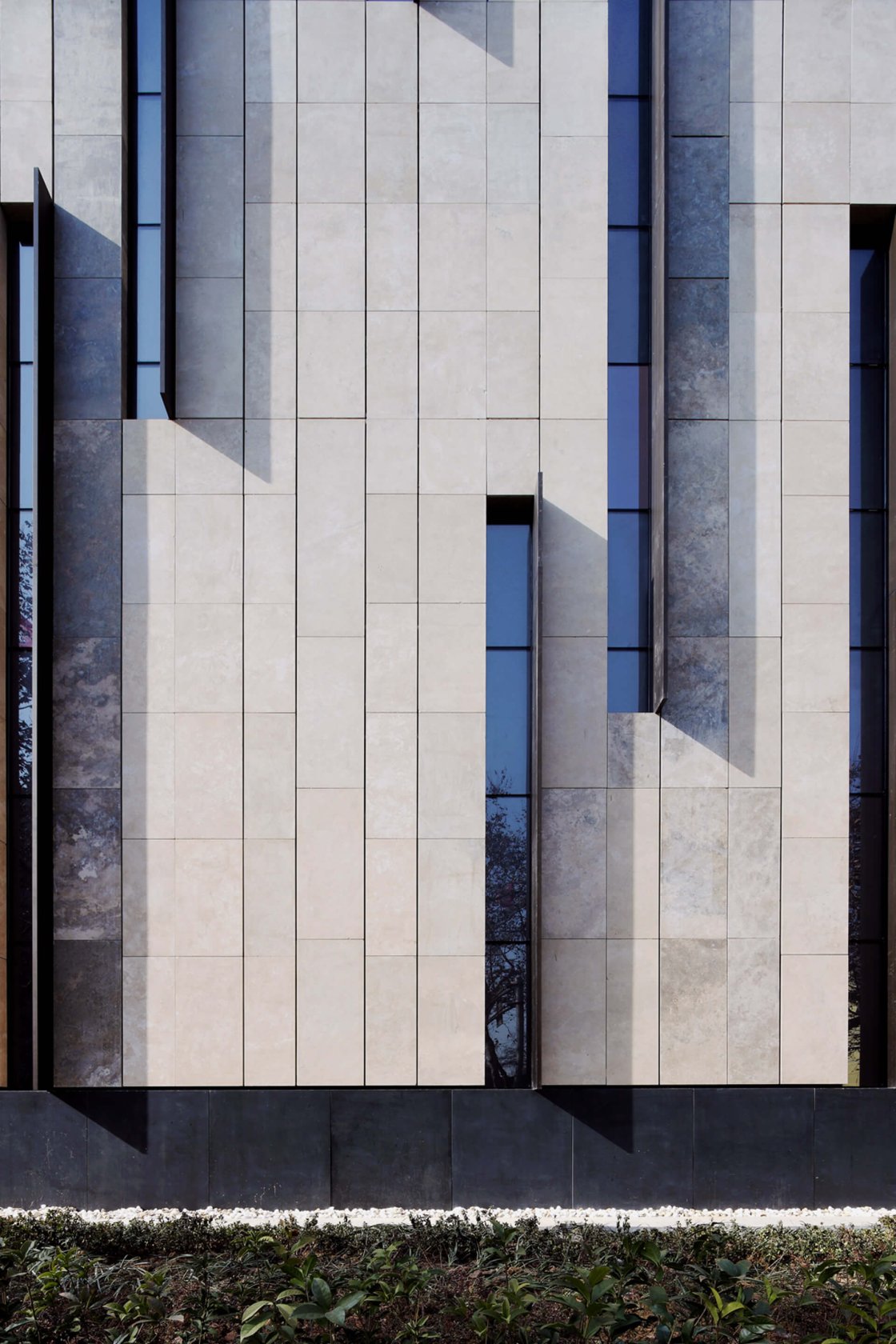 我们设计了两个相互交叉的石头立方体,这让人联想到太极图——阴和阳的象征。每个立方体内都为长期展览、特别展览、培训课程、会议以及日常办公提供了空间。 这两座建筑中间形成的 U 形空间提供了另一种使用可能性:一个高17米、有很多拐弯、如同峡谷一样的艺术和文化空间,其上被轻质玻璃屋顶所覆盖。它不仅是美术馆的交通空间,也是一条公共道路。因此我们让城市空间变成了一种经历。