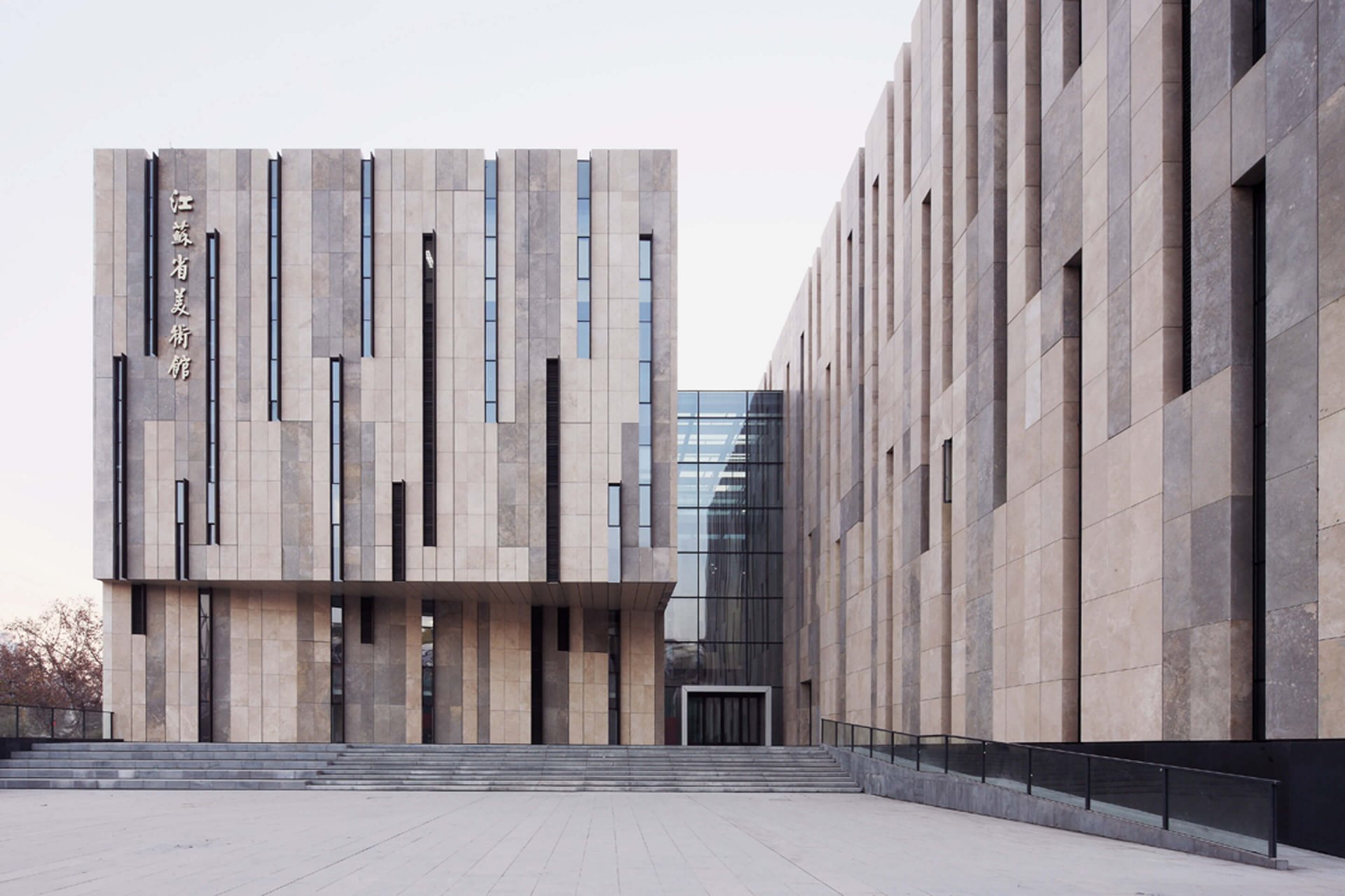 新建的江苏省美术馆紧邻历史悠久的总统府,地处南京的文化中心。靠近有“革命街道”之称的中山路和有“文化街道”之称的长江路。地块呈阶梯形,从这一特点出发,我们设计出了一座独特的博物馆。