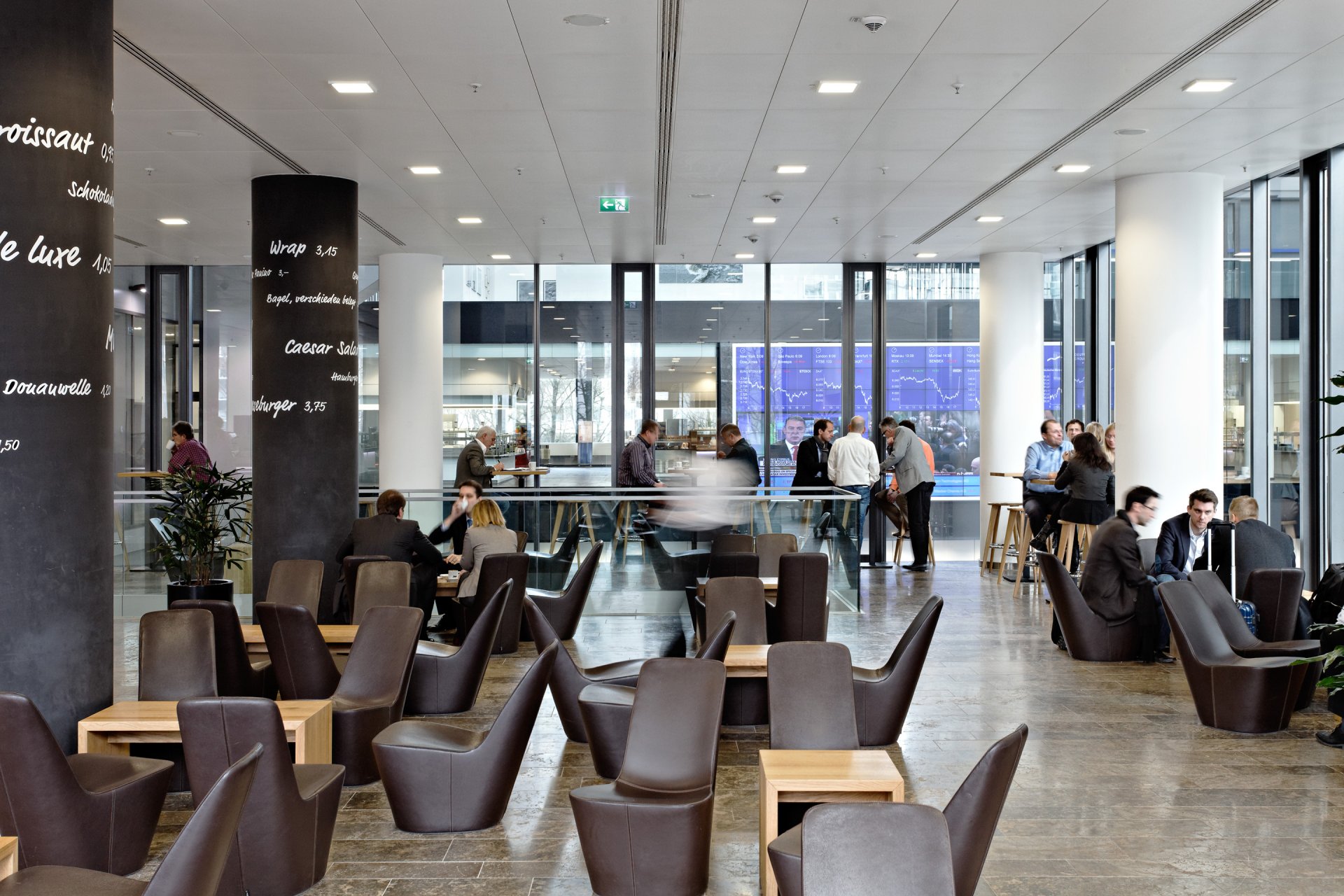 The Deutsche Börse head office in Eschborn offers space for informal discussion and an exhibition venue, and – not least – is pioneering in terms of sustainability: As the first high-rise in Germany to do so, the building was awarded LEED certification in platinum by the U.S. Green Building Councils.