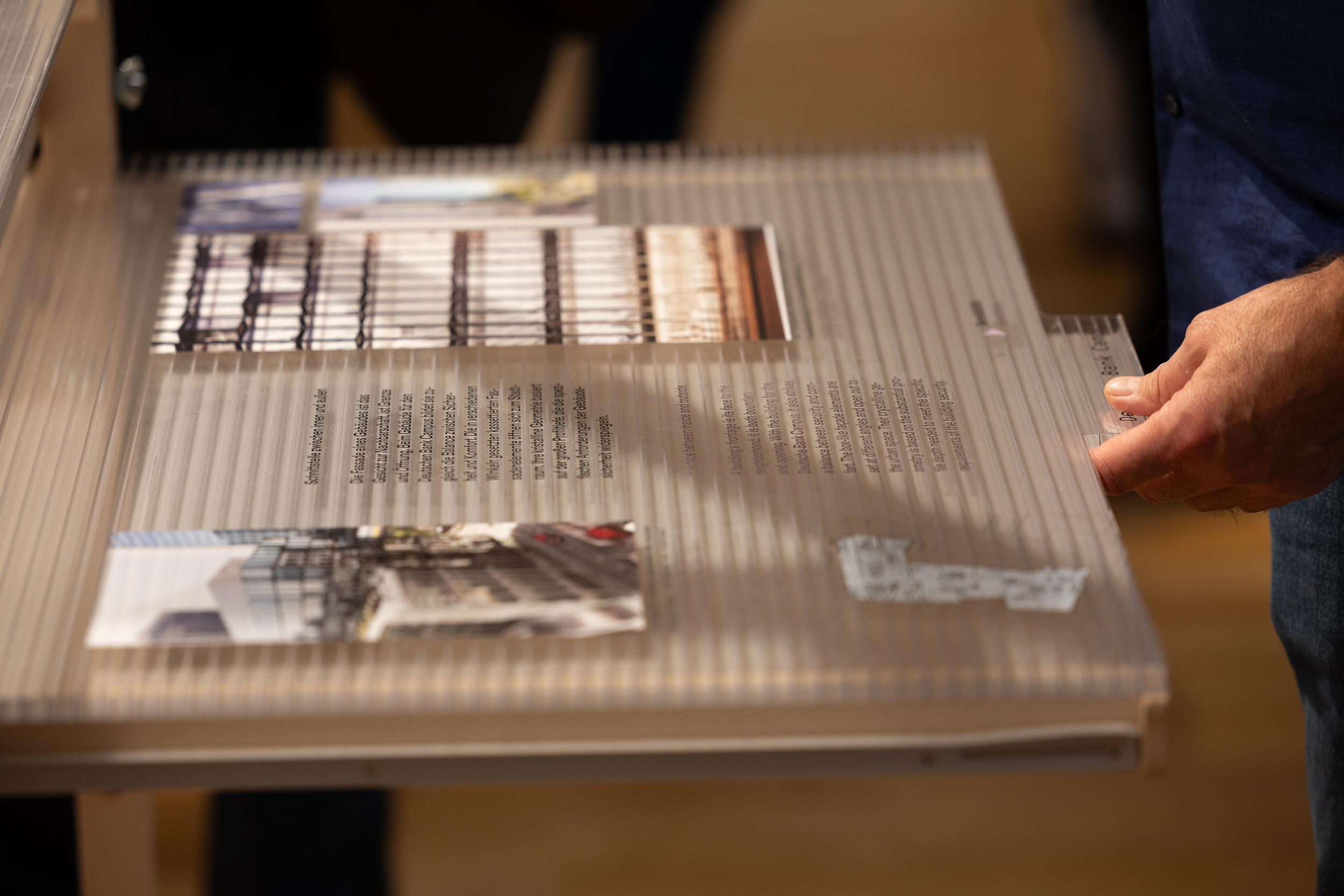 Im Zentrum der Ausstellung stehen sechs etwa zwei Meter hohe Türme, die verschiedene Themen wie Ort, Raum oder Kultur gewidmet sind. Von den Türmen werden Bezüge zu den Werkbänken am Rand des Raums hergestellt, auf denen Werkzeuge mit abstrakten Bezeichnungen wie Sensibilität oder Vielschichtigkeit erläutert werden.