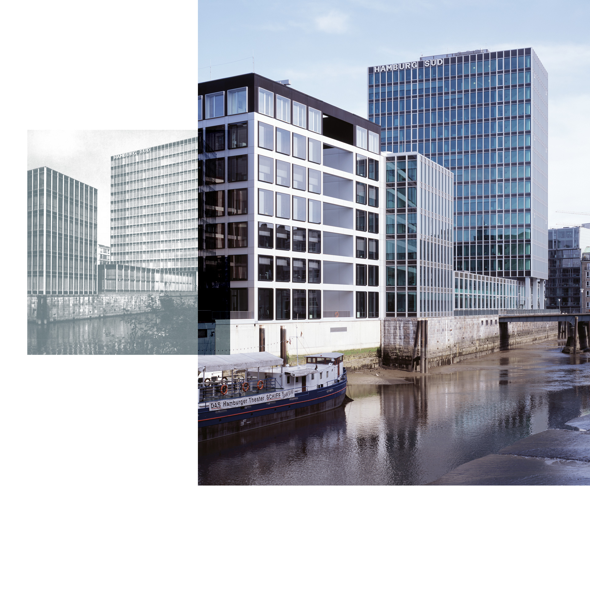 Auch in der Hansestadt waren die Architekten von KSP Engel darum bemüht, den Geist des Originals so weit wie möglich zu wahren, schon der Denkmalschutz forderte es so. Im Hauptsitz der Hamburg Süd wurde die Fassade aus energetischen Gründen komplett ausgetauscht, was für den Laien aber nicht zu erkennen ist. Auch die Aufstockung des Hochhauses um ein Geschoss fällt im Vorher-nachher-Vergleich kaum auf. Man kann sogar sagen, dass die vertikale Streckung des Hochhauses seiner Wirkung gutgetan hat und damit sicher ganz im Sinne seines Schöpfers ausgefallen ist.