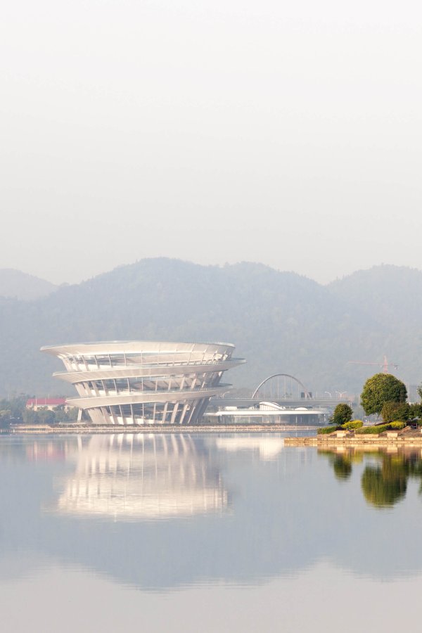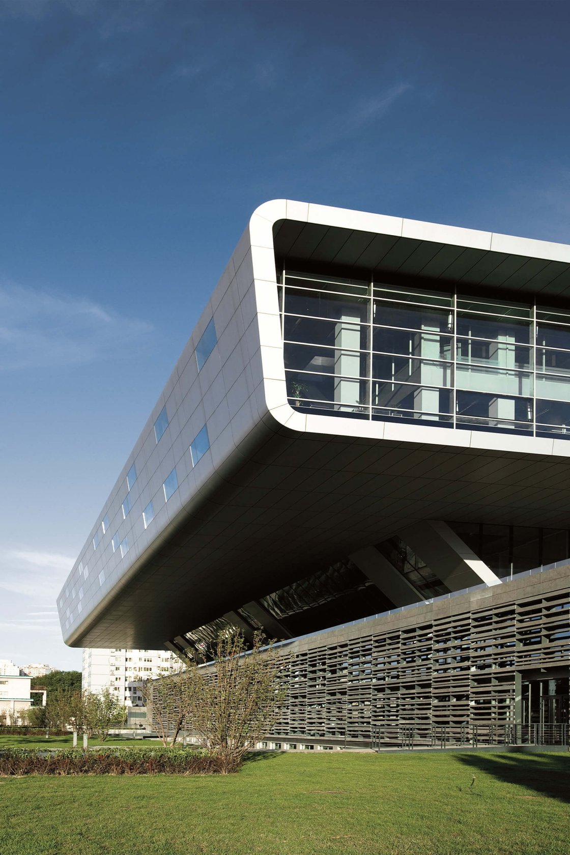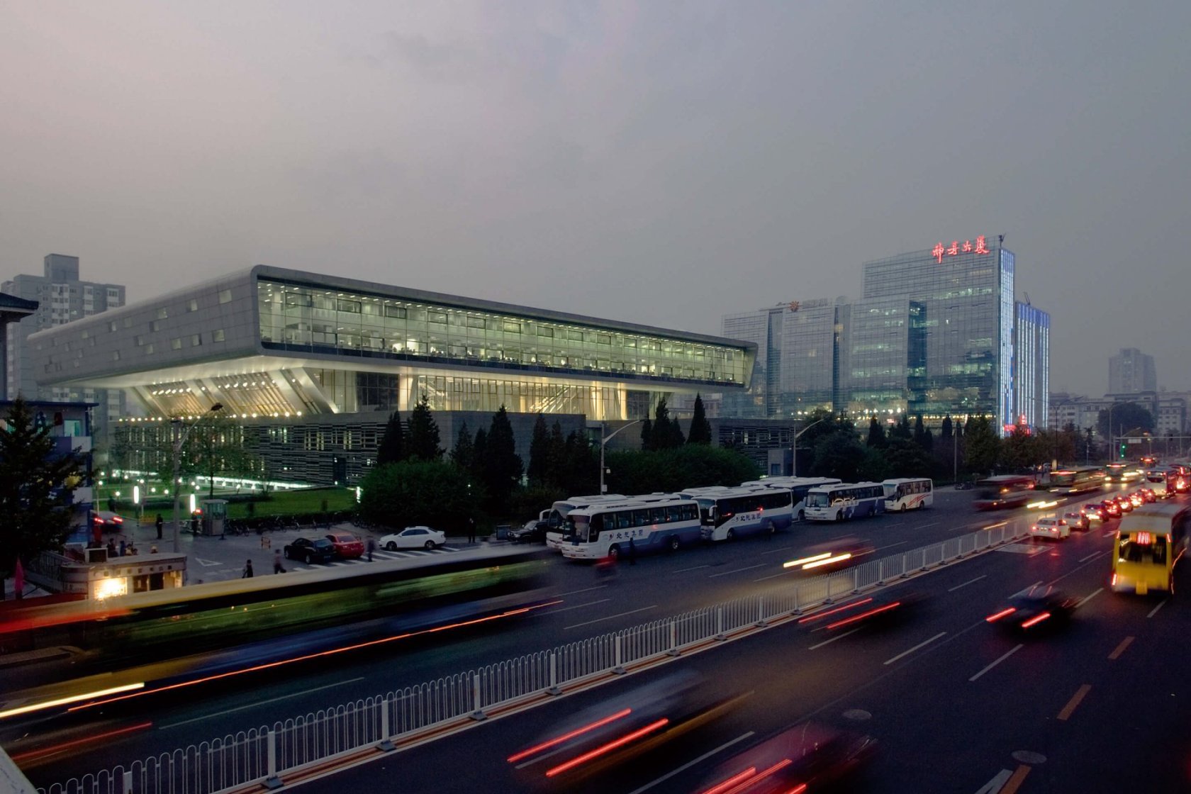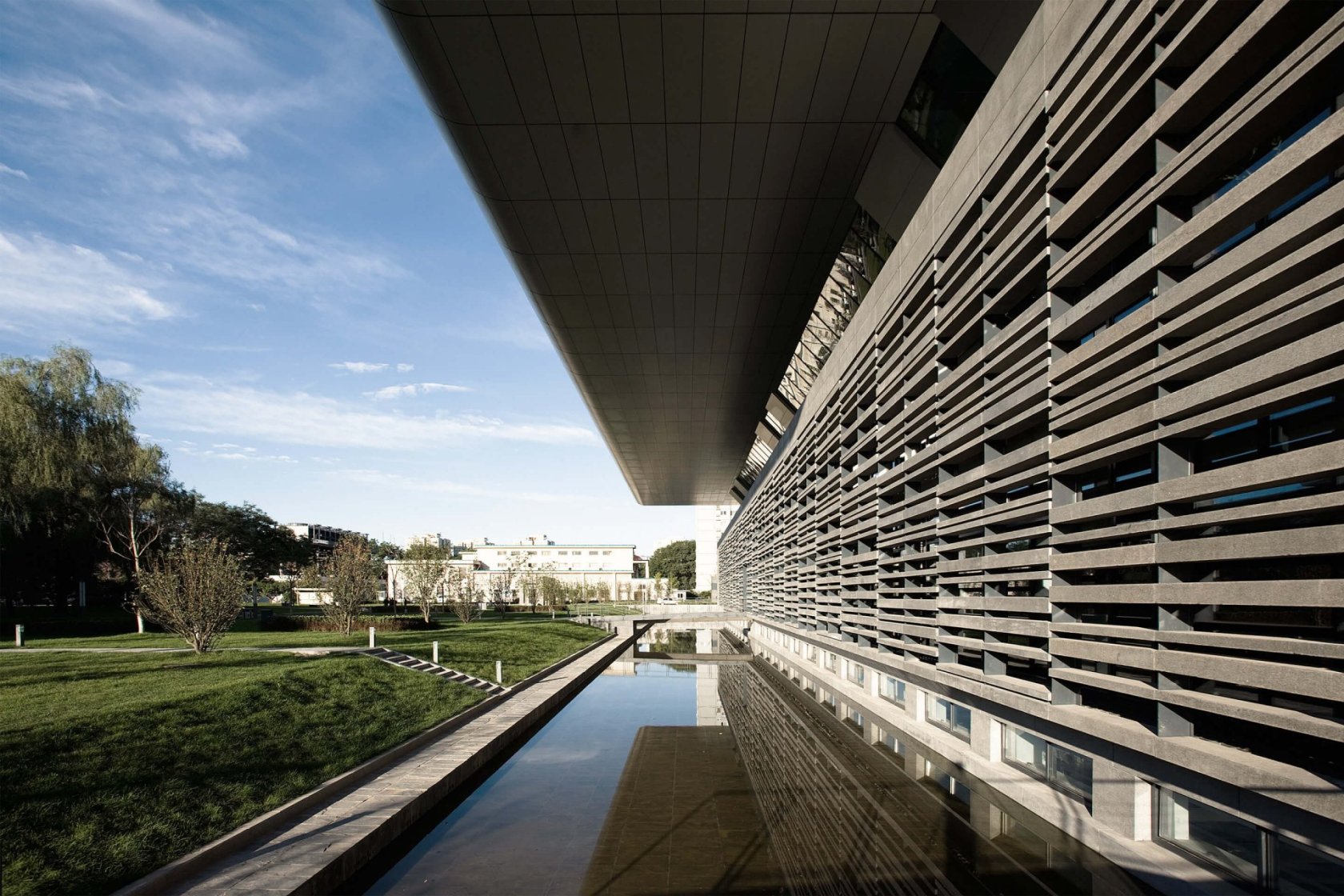 „Eine Brücke zwischen moderner Formensprache und traditioneller chinesischer Architektur findet Ausdruck in dem markanten, schwebenden Bibliotheksbau mitten in Peking.“