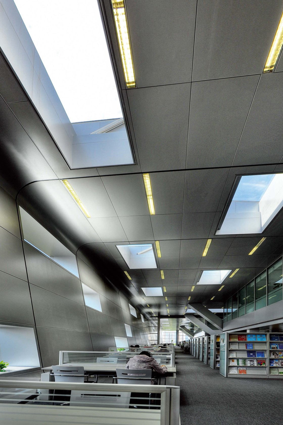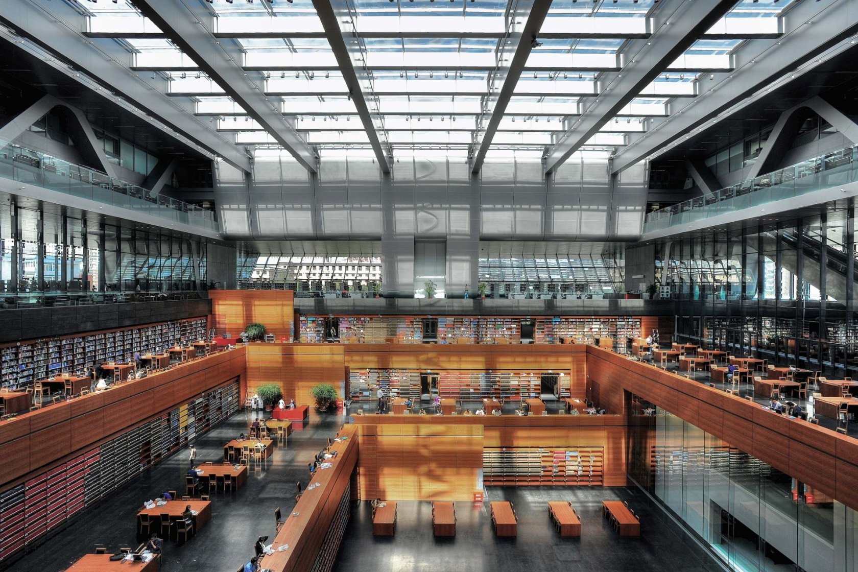 Das Sockelgebäude beherbergt Schriften der Vergangenheit und bildet die Basis des Bibliotheksneubaus. Der verglaste Raum zwischen Sockel und Dach dient gegenwärtig der Vermittlung dieses historischen Erbes. Das schwebende Dach beherbergt die digitale Bibliothek und steht als Sinnbild für die Zukunft der chinesischen (Schrift-)Kultur. Von dort aus werfen die Bibliotheksbesucher*innen einen Blick in die Ferne des großen Stadtgebiets.