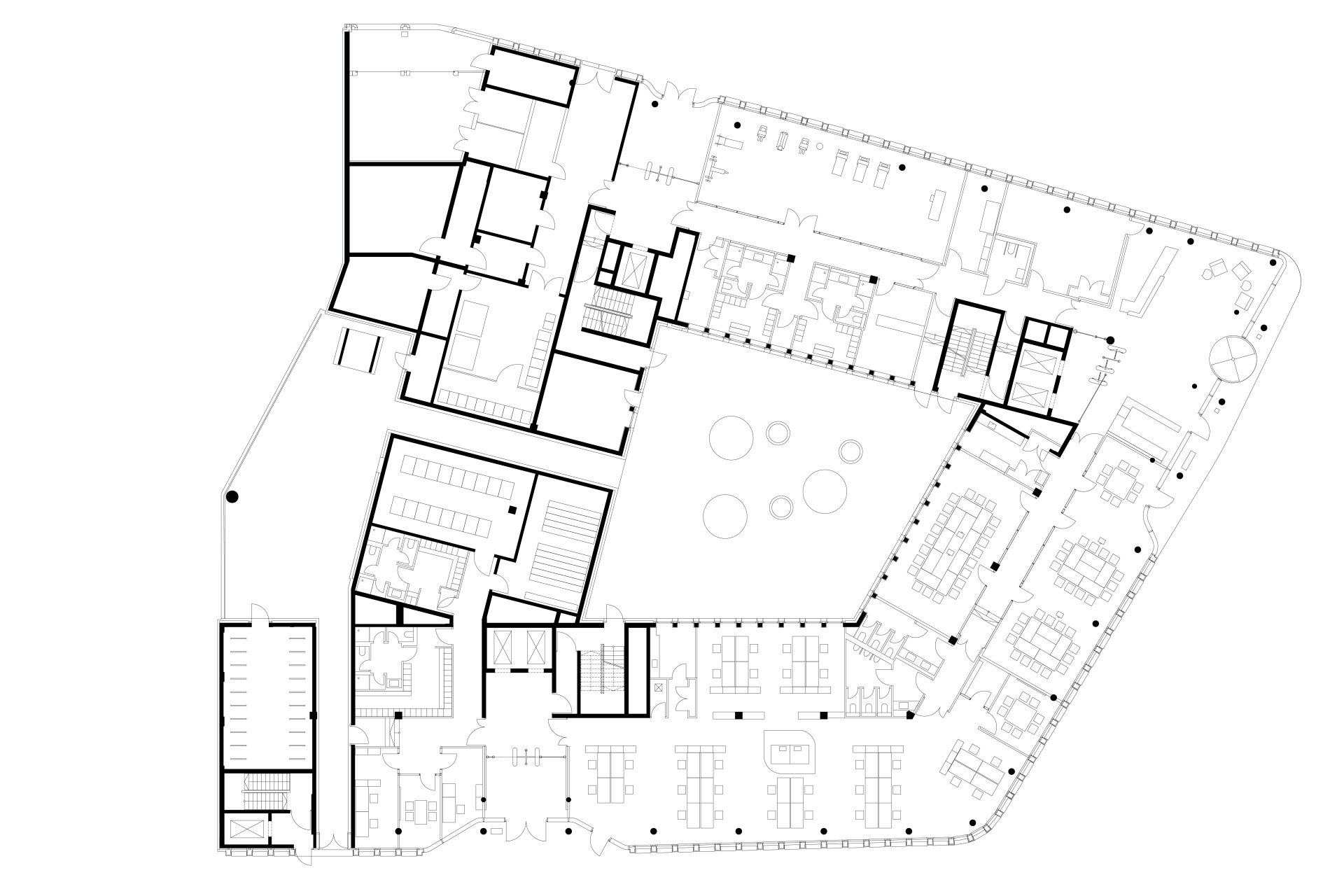 Welche Materialien und Farbtöne prägen das Umfeld des Bauwerks? Mit dieser Frage haben wir uns bei der Konzeption des KPMG Neubaus befasst. Hier war schnell klar: Heller Naturstein ist für uns die ideale Wahl. Kalkstein als zeitloses, natürliches Material ist langlebig und strahlt Authentizität aus. Die Fassade des sechsgeschossigen Gebäudes haben wir mit filigranen Lisenen lebendig gestaltet und mit Vor- und Rücksprüngen rhythmisch abgestuft. Verschiedene Farbtöne und Oberflächenstrukturen passen hervorragend zu diesem Bauwerk und unterstreichen seine Hochwertigkeit. Die städtebaulich wichtigen, abgerundeten Gebäudeecken sind ein wahrer Blickfang.