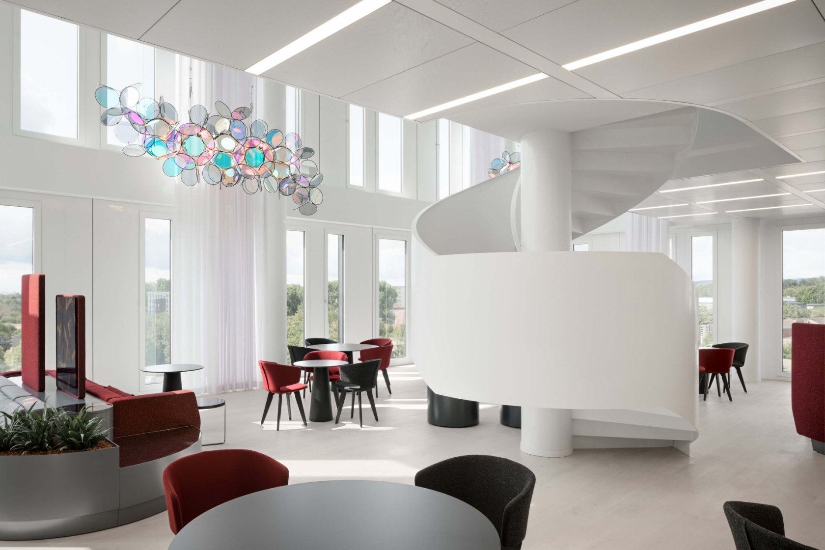 Die Arbeitswelt befindet sich im Umbruch: Mobiles Arbeiten ist inzwischen eine beliebte Alternative zum klassischen Arbeiten im Büro. Dennoch gibt es weiterhin gute Gründe, ins Büro zu kommen, zum Beispiel, um sich mit Kolleg*innen zu treffen und auszutauschen. Am neuen Sitz für SAP in Eschborn haben wir vielfältige Orte des informellen Austauschs geschaffen, die das agile Arbeiten im Team fördern.