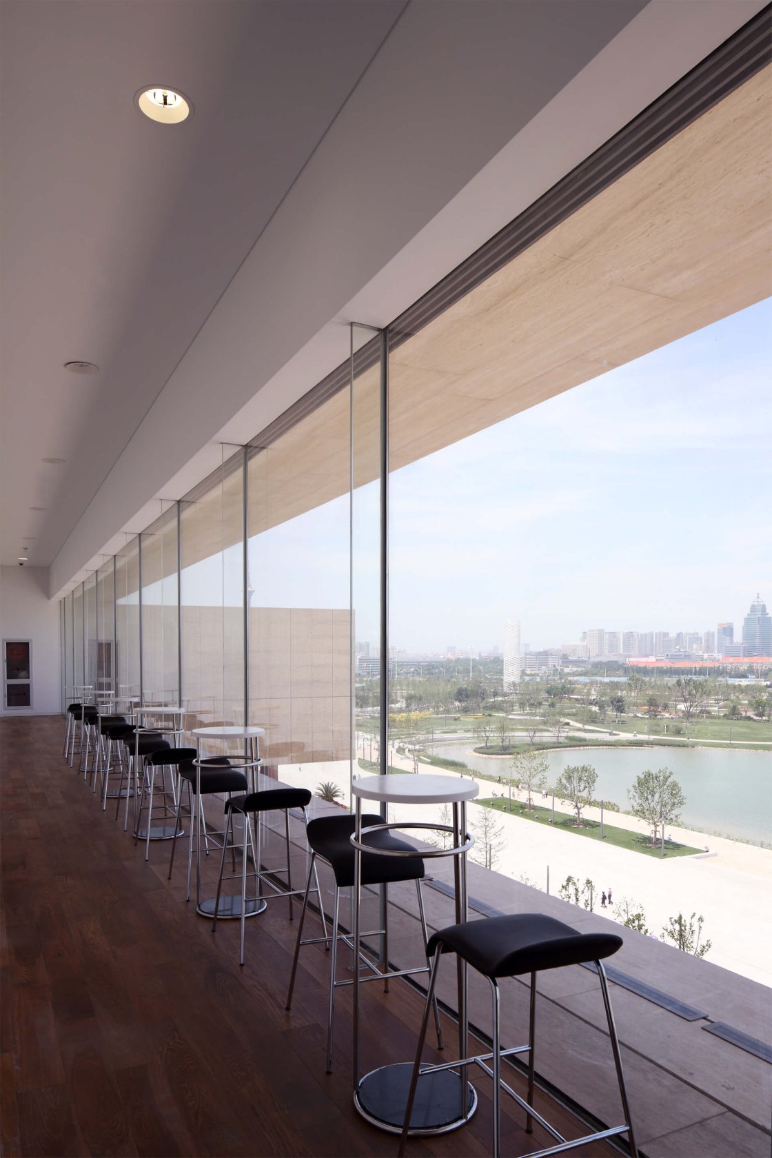 Der Urbanisierungsboom in der Volksrepublik China zeigt sich auch in Tianjin, einer Nachbarstadt von Peking. Das neue Kunstmuseum ist Teil eines umfangreichen Entwicklungsprojekts für ein großes Kultur- und Freizeitareal. In dessen Mittelpunkt: eine weitläufige Grünanlage mit zentral gelegenem See.